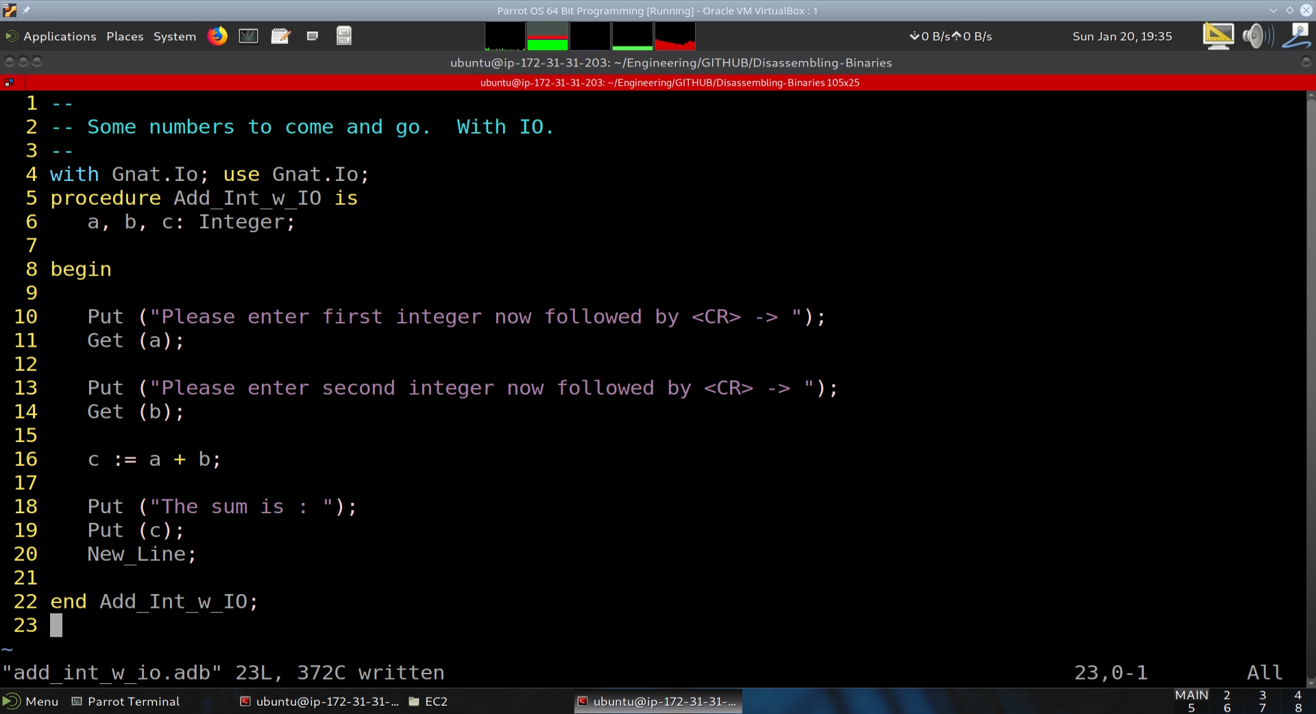 In this section we will disassemble binaries generated from the C, C++, Fortran, Ada, and Pascal high-level languages for the i386, AMD64, ARM32 and ARM64 platforms. We will make side by side comparisons to learn to recognize how different programming structures convert into assembly language and machine code. Project code is available at the following Github: https://